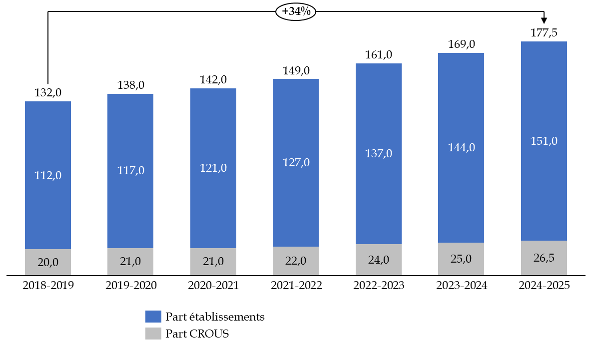Au titre de l'année universitaire 2024-2025, 177 millions d'euros ont été collectés au titre de la CVEC, contre 169 millions d'euros en 2023-2024.