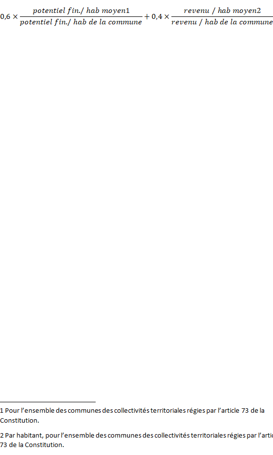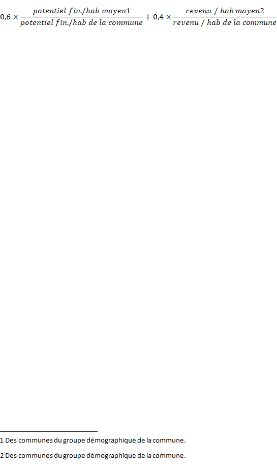 * 115 Parfois un coefficient de 0,6 est appliqué au potentiel financier par habitant, parfois il est appliqué au revenu par habitant.