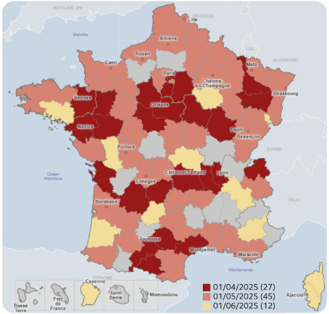 * 154 Sont exonérés dans cette hypothèse : Aisne, Hautes-Alpes, Ariège, Aube, Aude, Calvados, Cantal, Côte-d'Or, Cotes-d'Armor, Creuse, Eure, Eure-et-Loir, Indre, Indre-et-Loire, Loir-et-Cher, Haute-Loire, Loiret, Lot, Lot-et-Garonne, Lozère, Maine-et-Loire, Manche, Marne, Haute-Marne, Mayenne, Meuse, Morbihan, Moselle, Oise, Orne, Pas-de-Calais, Puy-de-Dôme, Pyrénées-Orientales, Haute-Saône, Saône-et-Loire, Sarthe, Deux-Sèvres, Somme, Tarn, Vienne, Yonne, Territoire de Belfort, Seine-Saint-Denis, Val d'Oise, Guadeloupe et La Réunion.