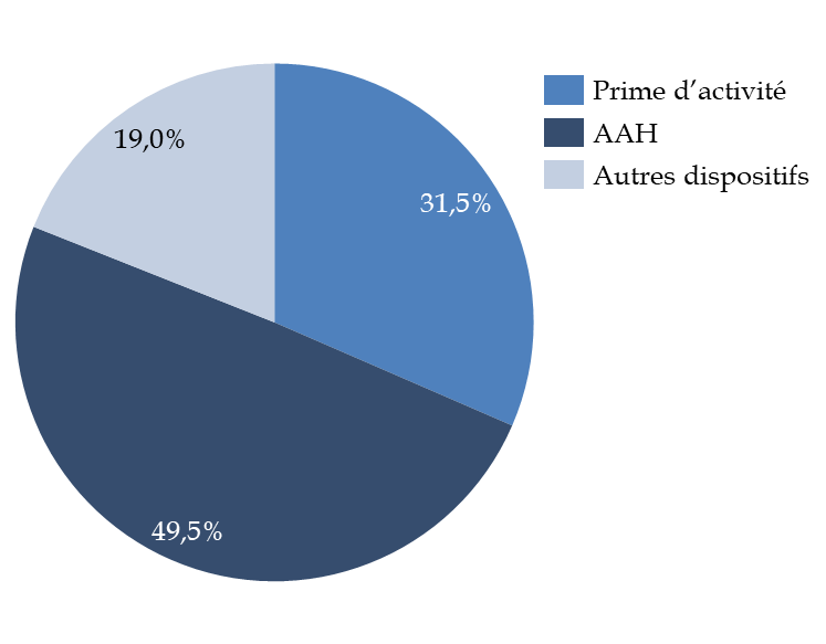 La prime d'activité (9,3 milliards d'euros) et l'AAH (14,6 milliards d'euros) représentent à elles seules plus des quatre cinquièmes des crédits demandés pour la mission en PLF 2024 (81 %).