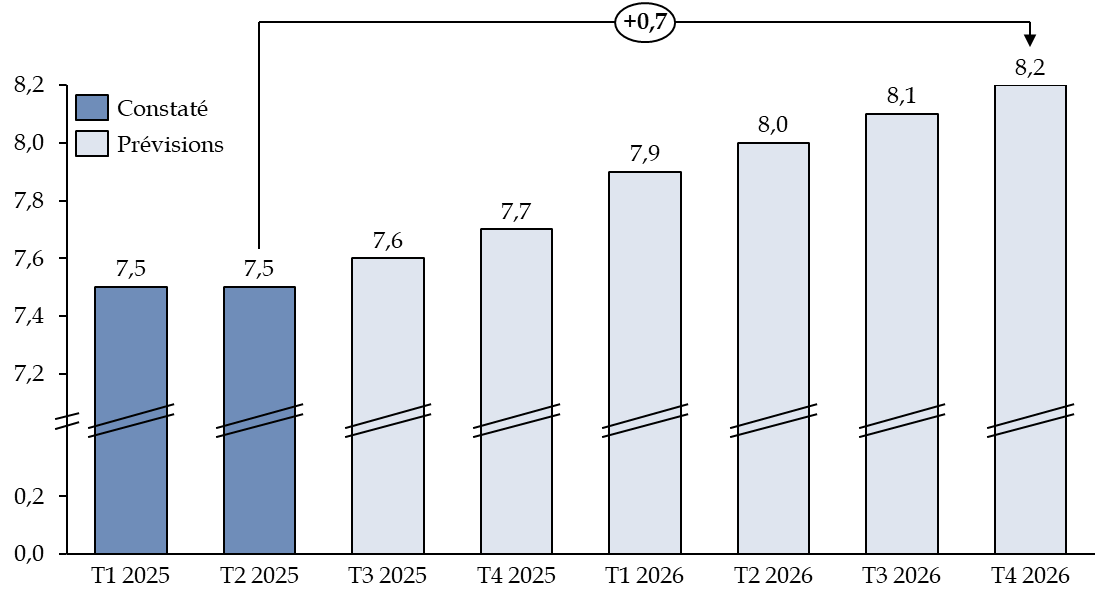 Évolution du taux de chômage entre début 2025 et fin 2026