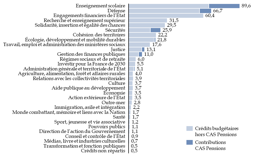 * 23 Qui sont en réalité réparties en deux missions stratégiques distinctes, l'une relative au CAS « Pensions », l'autre à la masse salariale, y compris au titre des OPEX et MISSINT.