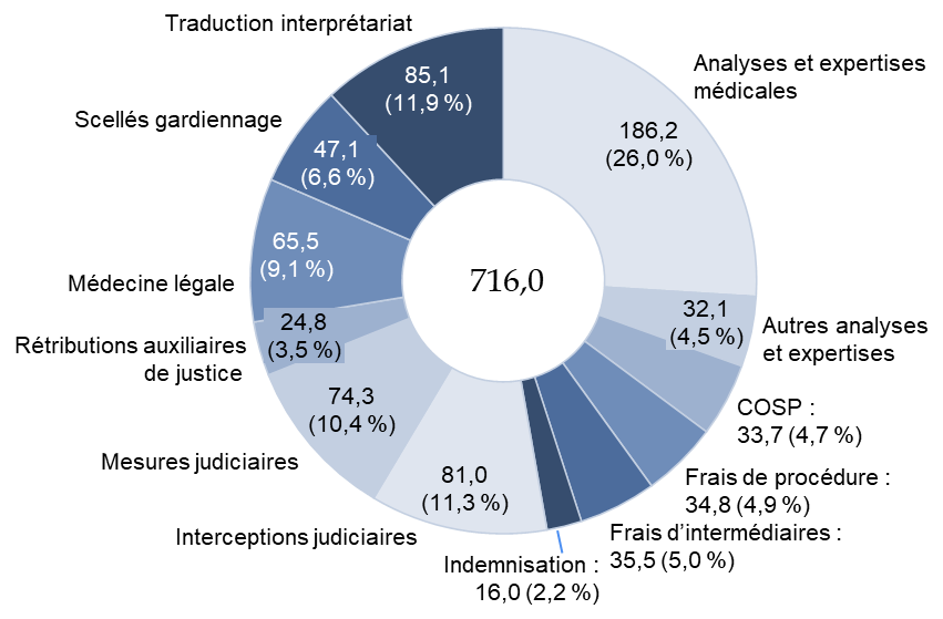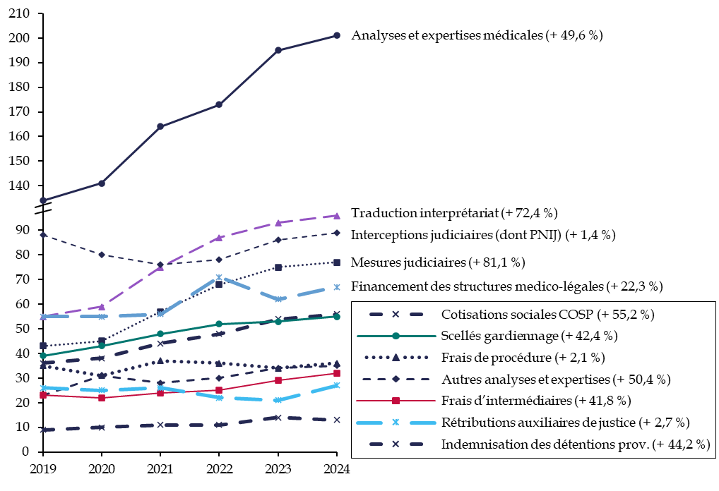 * 51 Voir la note d'exécution budgétaire de la Cour des comptes relative à la mission « Justice » en 2024, p. 45. Voir également, supra, la description de la répartition des frais de justice en 2024.
