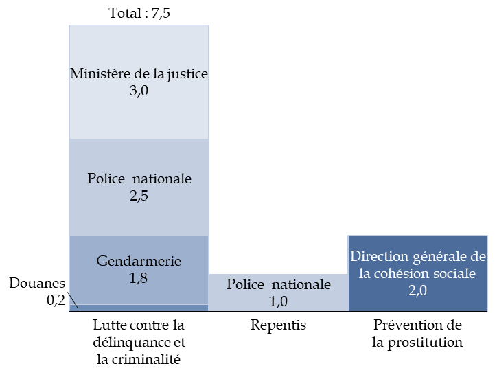 * 70 Les autres affectataires possibles sont les services judiciaires, les services de l'administration pénitentiaire, les établissements publics du ministère de la justice, la marine nationale, l'Office français de la biodiversité (OFB) et les placés sous l'autorité du ministère chargé du budget qui effectuent des missions de police judiciaire.