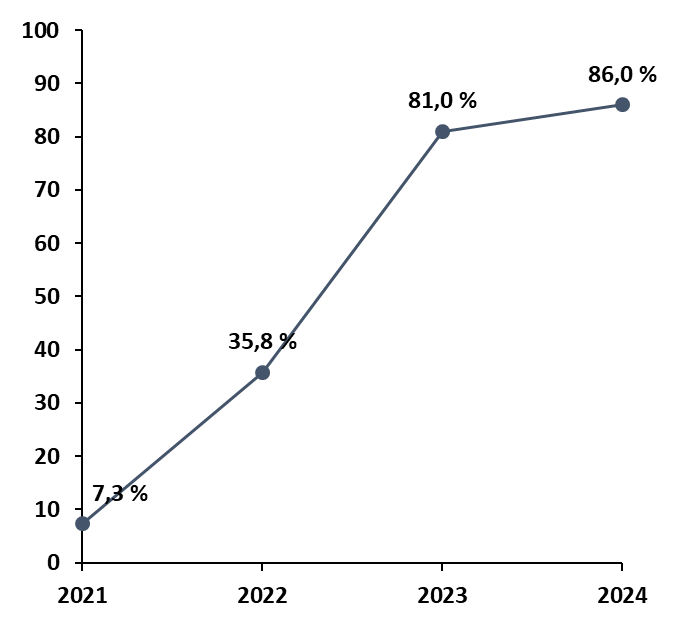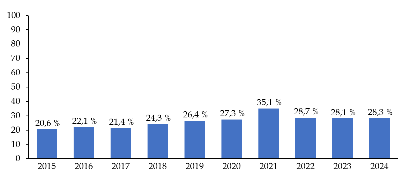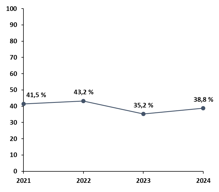 Depuis 2022, les différentes instructions ministérielles ont conduit à placer prioritairement en rétention les étrangers en situation irrégulière présentant une menace à l'ordre public. La part des retenus du profil « trouble à l'ordre public » est ainsi passée de 7,3 % en 2021 à 86 % en 2024 dans les CRA métropolitains. Malgré ce ciblage, le taux global d'éloignement n'a que légèrement reculé4(*), manifestant un équilibre entre sécurité publique et efficacité de l'éloignement.