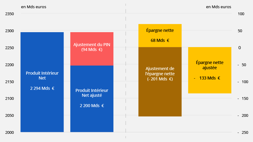 * 47 Sylvain Larrieu, Sébastien Roux, « Peut-on prendre en compte le climat dans les comptes nationaux ? L'épargne nette ajustée des effets liés au climat est négative en France. », Insee Analyses n° 98, novembre 2024.