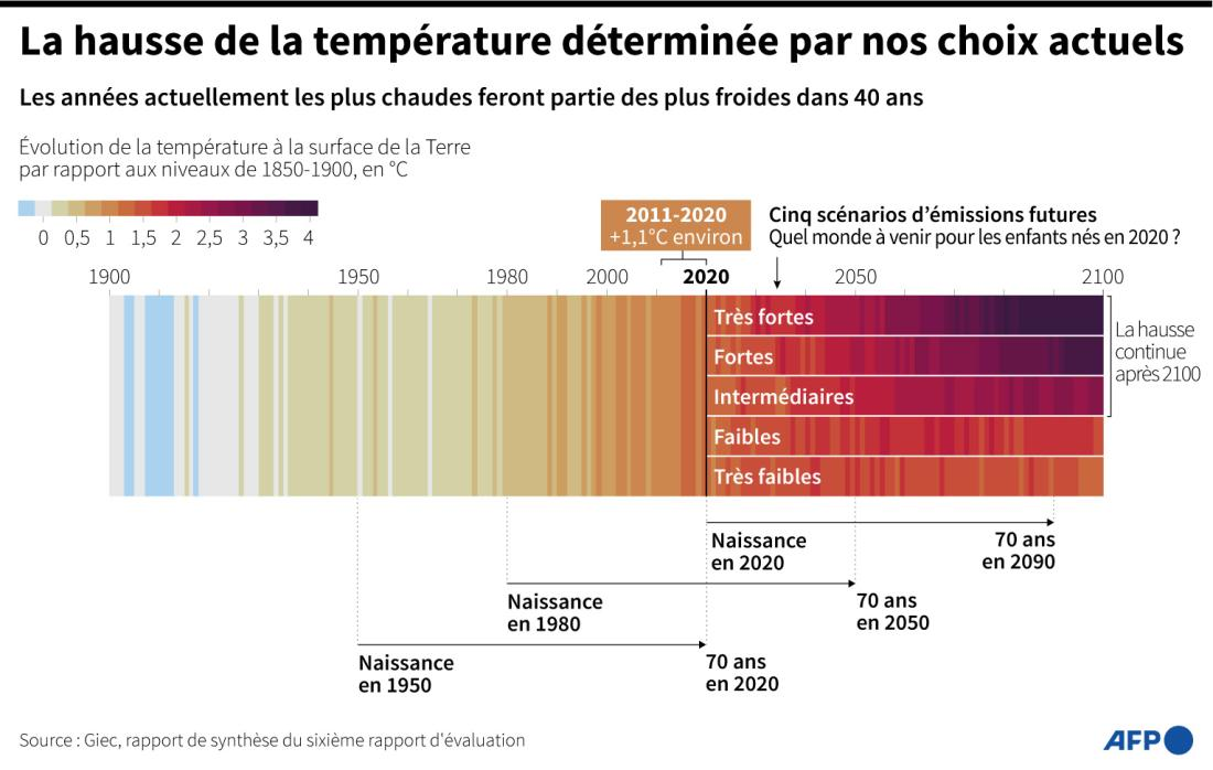 * 20 Pour un réchauffement limité à + 2 °C, le budget carbone à ne pas dépasser est estimé à 1 050 millards de tonnes de CO2, ce qui correspond à environ 25 années d'émissions à rythme d'émission inchangé.