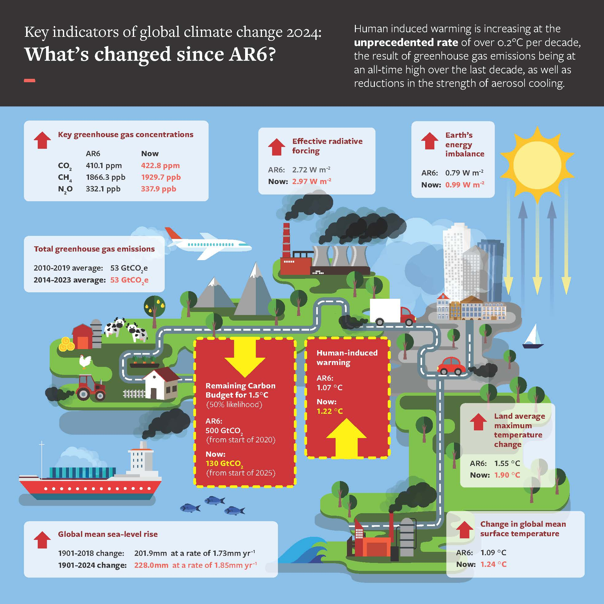 * 19 Indicators of Global Climate Change 2024: annual update of key indicators of the state of the climate system and human influence, Earth Syst. Sci. Data, 17, 2641-2680, 2025 : https://essd.copernicus.org/articles/17/2641/2025/.