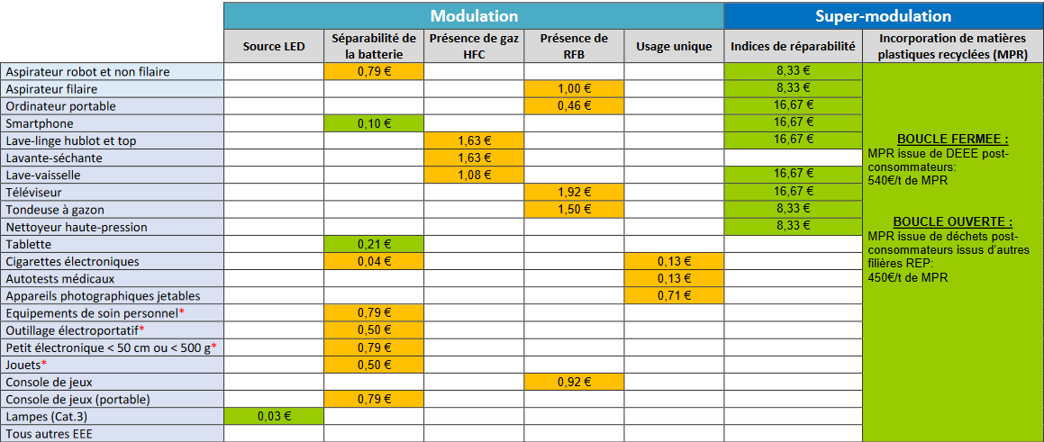 * 110 « Performances et gouvernance des filières à responsabilité élargie du producteur », IGF, IGEDD, CGE, juin 2024, page 19 de l'annexe V, d'après les cahiers des charges des filières.