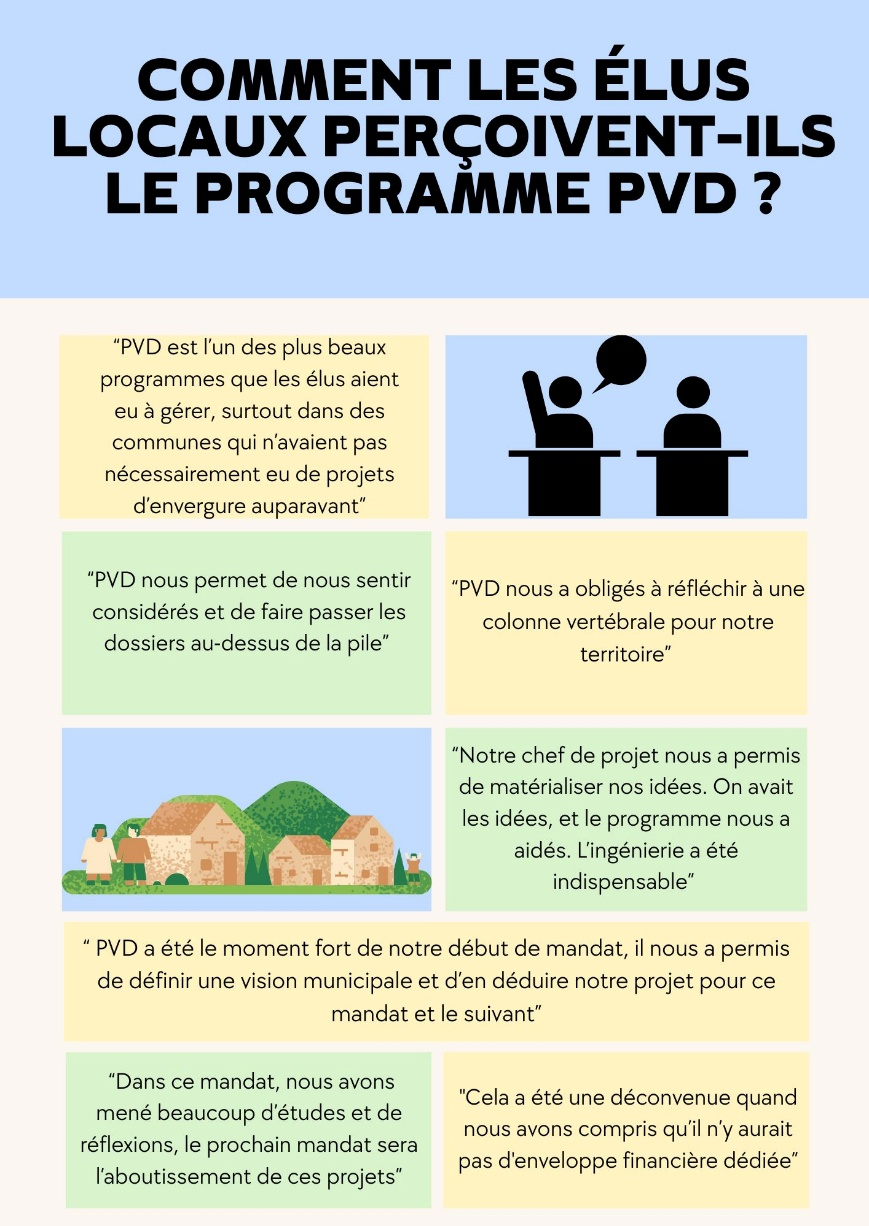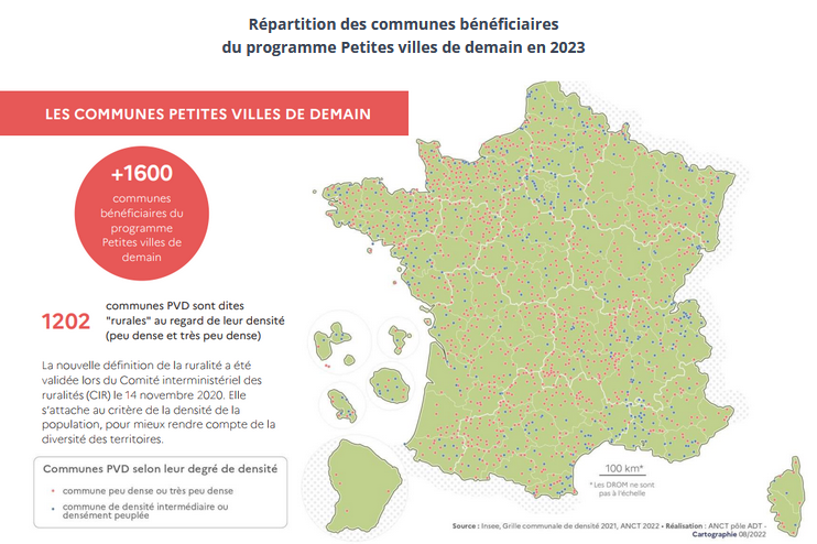 Lancé en 2020, le dispositif PVD vise à soutenir la revitalisation des petites centralités de moins de 20 000 habitants - conformément aux engagements pris lors de l'Agenda rural de 2019 -, à travers un appui en ingénierie, sur le modèle du programme « Action coeur de ville » dédié aux villes moyennes.