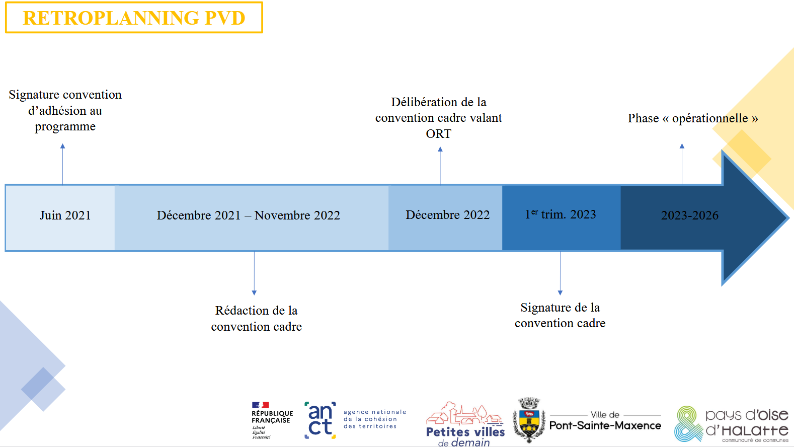 La mise en oeuvre de PVD repose sur une approche ascendante, décentralisée et déconcentrée : en cela, le dispositif rompt avec la logique « classique » des appels à projets pour faire émerger des projets « sur mesure », adaptés aux besoins de chaque territoire.