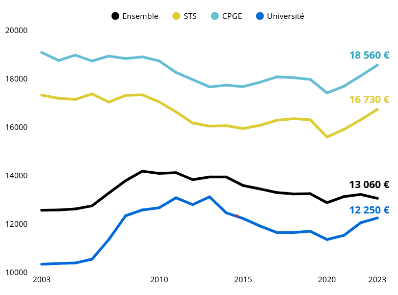* 66 Contre 16 730 euros pour un étudiant en STS et 18 560 euros pour un étudiant en CPGE.