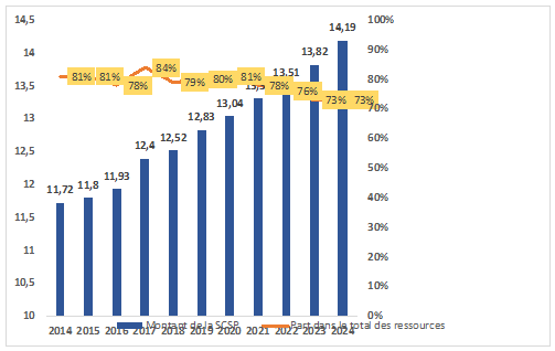 * 105 Il convient cependant de noter qu'à l'échelle de chaque université, le développement des ressources propres peut se faire en trompe-l'oeil. Dans les établissements où la SCSP est historiquement basse, les ressources propres sont en effet développées de manière mécaniquement plus importante.