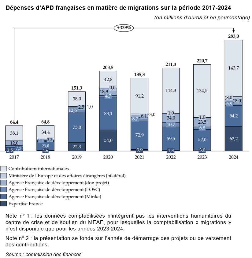 * 22 À savoir, l'Agence française de développement (AFD), Expertise France (EF), Civipol, l'Office français de l'immigration et de l'intégration (Ofii) et l'Office français de protection des réfugiés et apatrides (Ofpra).
