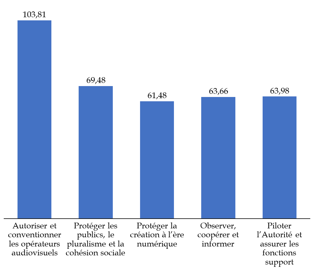 * 27 La présidence et le collège, la direction générale et la direction juridique étant amenés à travailler sur des dossiers relevant des cinq destinations budgétaires précitées, les dépenses qui leur sont rattachées, consistant essentiellement en de la masse salariale, sont ventilées sur chacune des destinations.