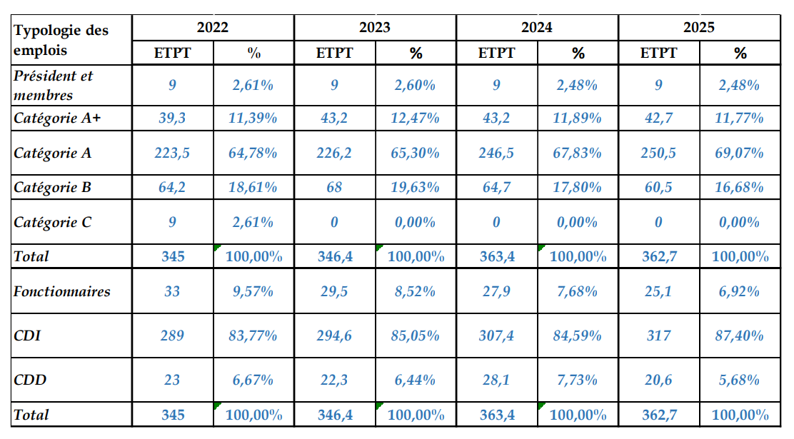 * 17 Lesquelles disposent respectivement, pour 2025, d'un plafond d'emplois de 545 ETPT et de 452 ETPT.