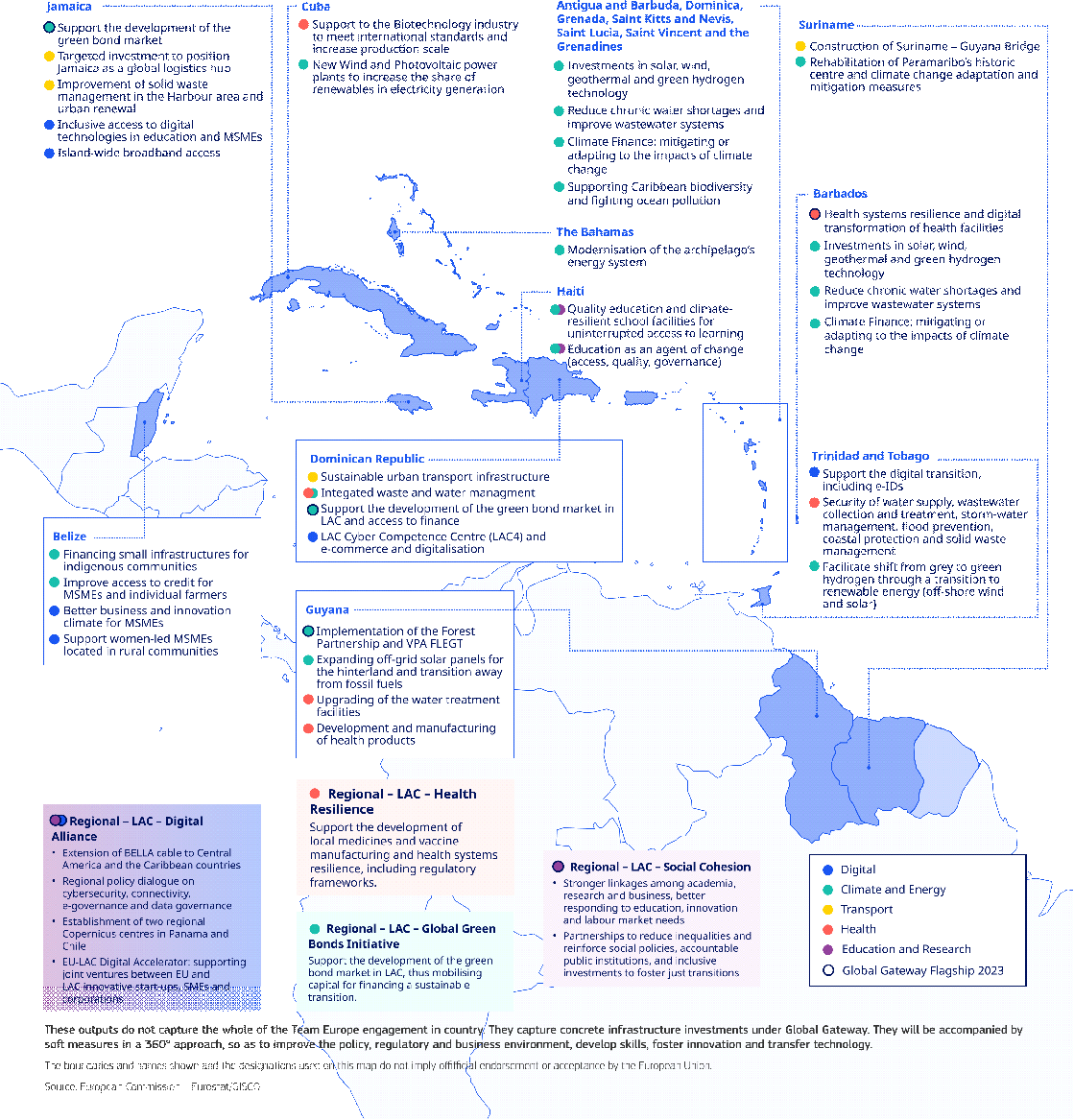 * 21 EU - Latin America and Caribbean Insvestment Agenda. Partnerships on Digital, Climate and Energy, Transport, Health, Education and Research, July 2023.