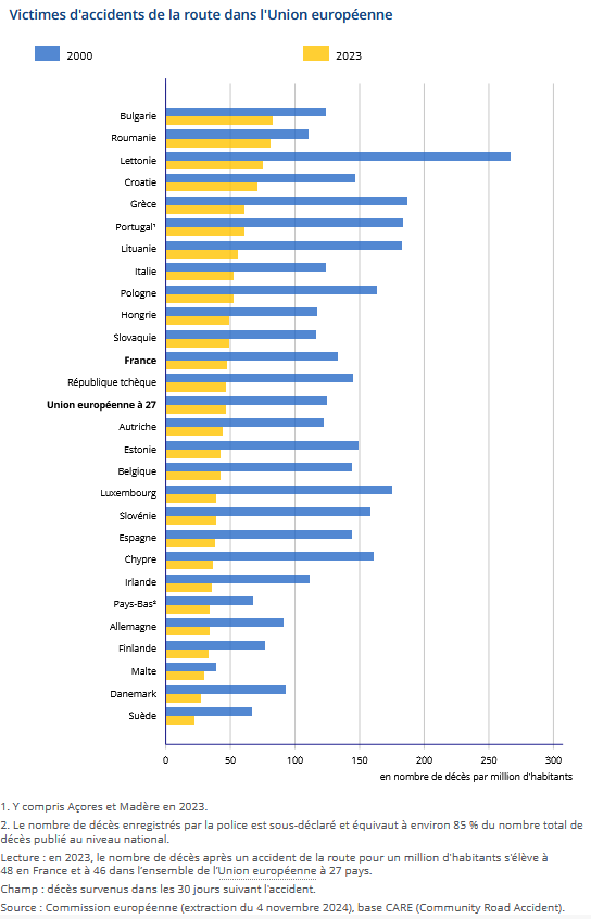 Ce paquet « contrôle technique » est l'une des pièces essentielles du plan d'action de l'Union visant à améliorer, d'une part, la sécurité routière et, d'autre part, la lutte contre les émissions de polluants et les émissions sonores. Concernant la sécurité routière, nous déplorons, hélas, toujours près de 20 000 décès sur les routes de l'Union européenne en 2024. En France, 3 432 personnes sont décédées. Ce nombre ne baisse plus, puisqu'il est en augmentation de 1 % depuis 2023. Les principales causes des accidents de la route sont la conduite sous l'influence de l'alcool ou de drogues, la distraction au volant due au téléphone, aux SMS, aux écrans, voire à la télévision pour certains poids lourds, les excès de vitesse, bien sûr, ainsi que diverses erreurs humaines. Le mauvais état ou la mauvaise conception de l'infrastructure - surface glissante, marquage inadéquat, mauvais entretien - en sont également responsables. L'amélioration des dispositifs de sécurité des véhicules et la mise en place des contrôles périodiques et routiers en bord de route ont conduit à ce que les défaillances des véhicules ne constituent plus qu'une faible part des accidents. Elles en demeurent toutefois un facteur contributif, et une part de ces défaillances reste évitable via un contrôle efficace et effectif.